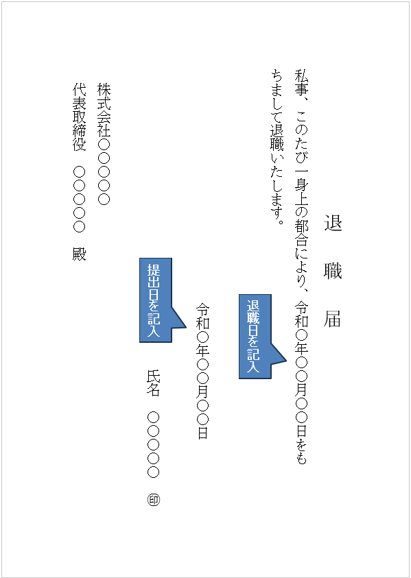 下記の画像のような退職届で問題ございません。